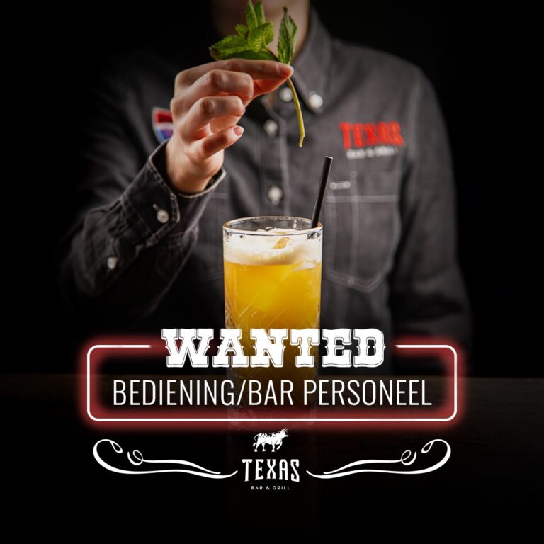 Ben jij een echte horecatopper? Dan zoeken we jou! Bij Texas Bar & Grill kom je terecht in een heel gezellig team. Bovendien is het niet alleen gezellig bij Texas Bar & Grill. De CAO is ook dik in orde. Je deelt mee in de fooien en salaris en vakantiedagen zijn goed geregeld. Heb jij nog niet genoeg ervaring? Dan bieden wij ook nog eens een cursus aan waar nodig.